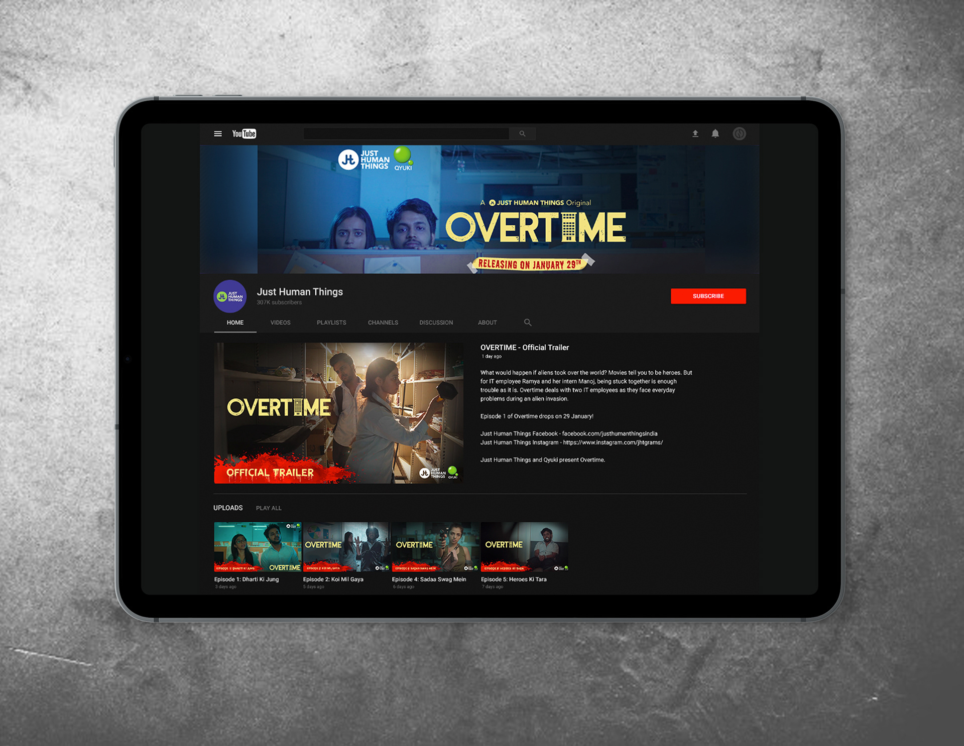 YouTube Page on an iPad